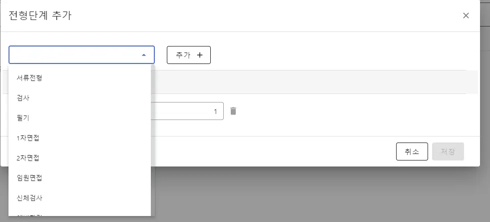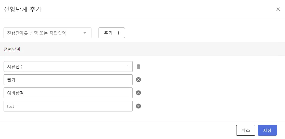 전형단계는 기본제공하는 타이틀을 사용하셔도 되고, 직접 타이핑하여서 추가할 수 있습니다.