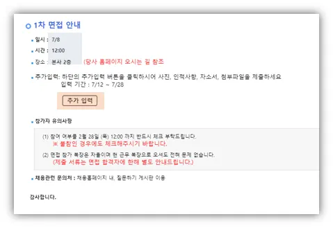 - 발표가 열려 있더라도, 추가입력 받을 시간동안만 지원자가 이력서 내용을 입력할 수 있음