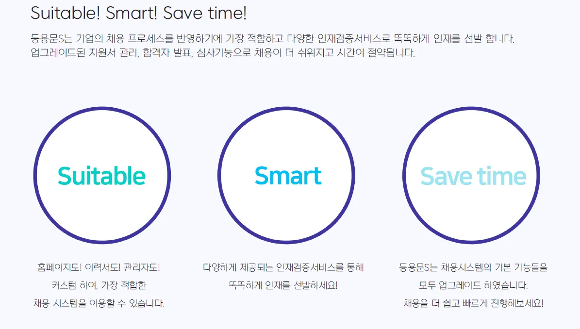 스마트(Smart)하게 시간을 절약해서(Save time) 적합한(Suitable)인재를 채용 해 보세요!