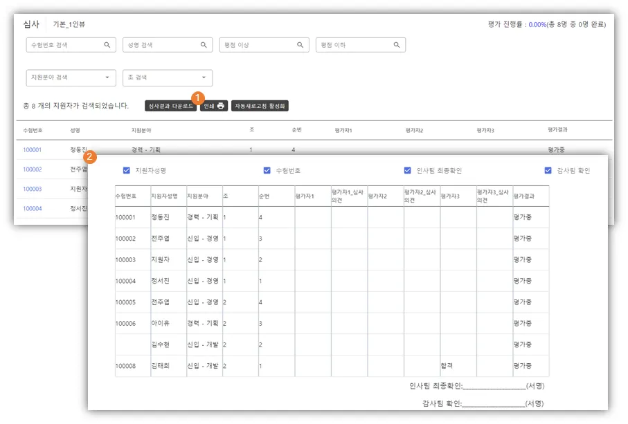 - 심사 결과 다운로드 : 심사결과 엑셀다운로드