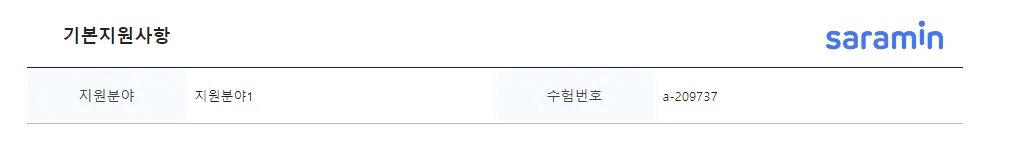 지원분야별 수험번호 코드 : 지원분야별로 수험번호 앞에 코드 (ex, 01, A)를 지정할 수 있습니다.
