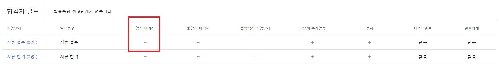 모든 합격 페이지를 사용할 경우, 새로운 전형단계를 추가하여 사용할 수 있어요