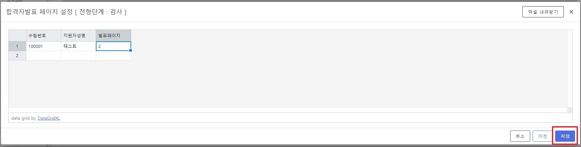 1) 합격자 발표 페이지에서 다운로드 링크를 먼저 생성 및 복사