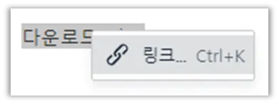 ex. 링크 삽입 전 : 다운로드 링크 → 링크 삽입 후 : 다운로드 링크