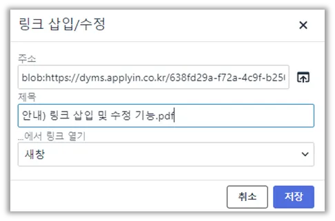 ex. 파일명 : 안내) 링크 삽입 및 수정 기능.pdf