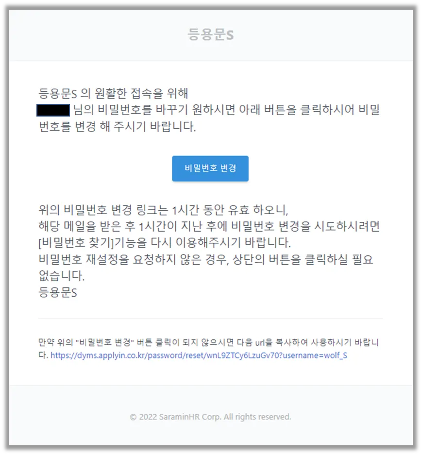 해당 메일을 열은 후에 비밀번호 변경을 진행 후 재로그인 하시기 바랍니다.