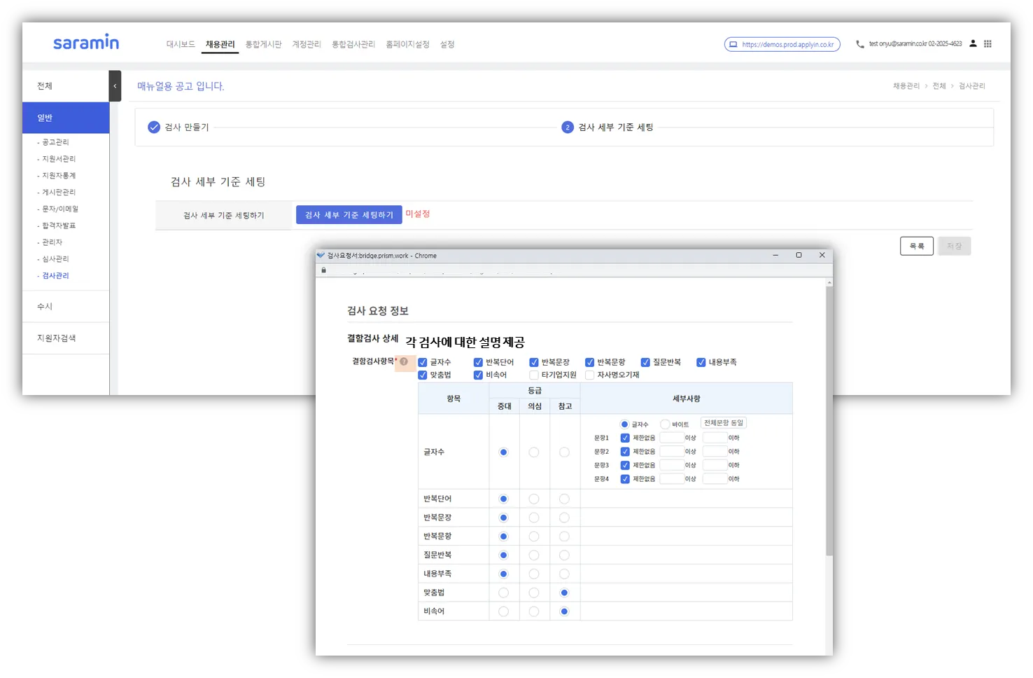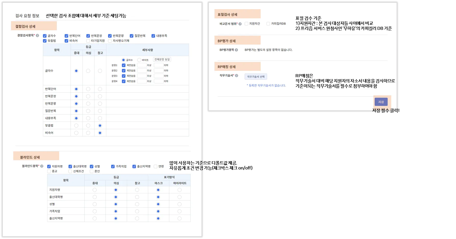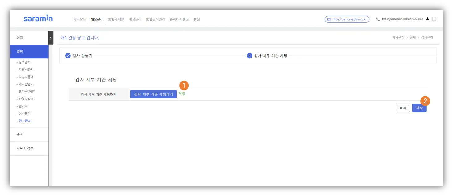 - 저장 클릭해야 검사 세부 기준 세팅 완료
