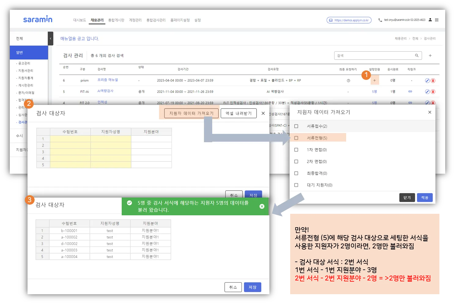 2) 지원자 데이터 가져오기 : 전형단계별로 지원자 데이터 가져오기 가능