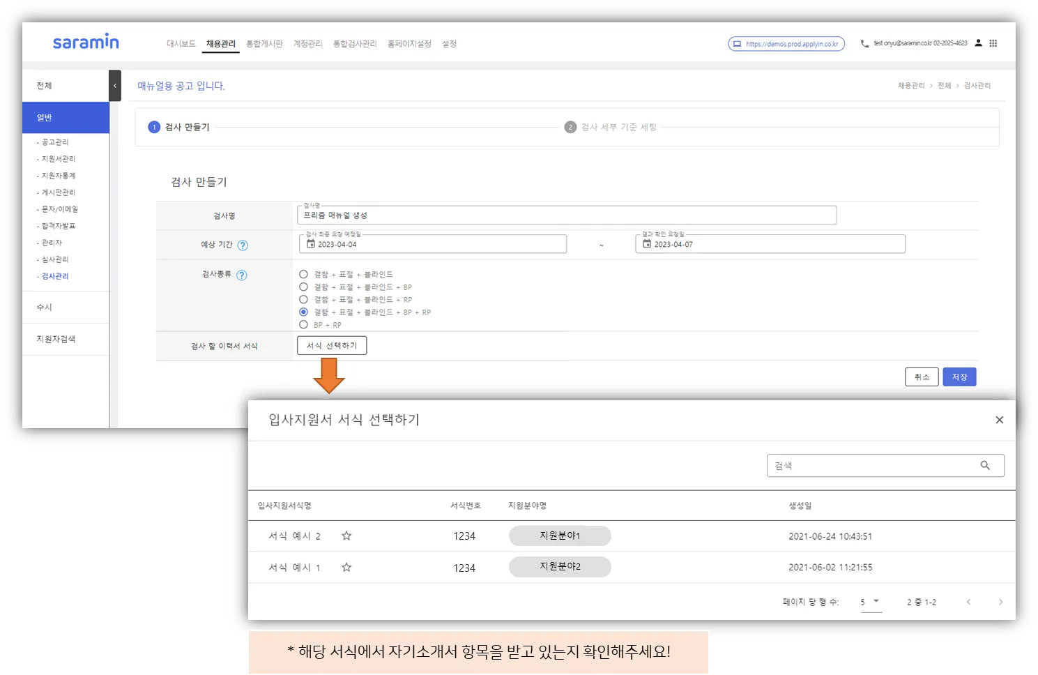 * 해당 검사 대상인 서식을 사용하는 지원자만 불러와짐