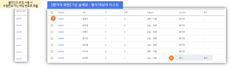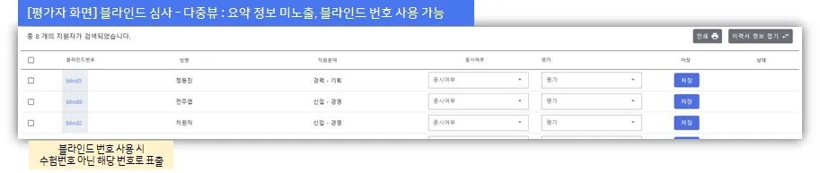 블라인드 심사인경우, 지원자 번호를 다른 번호로 세팅 가능(심사 세팅자)