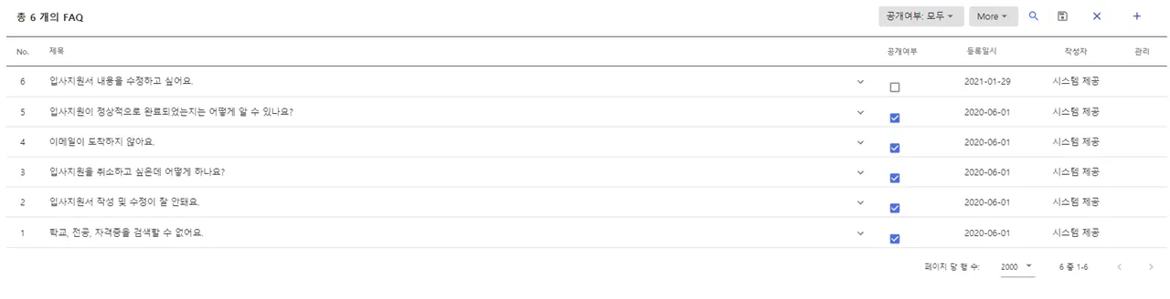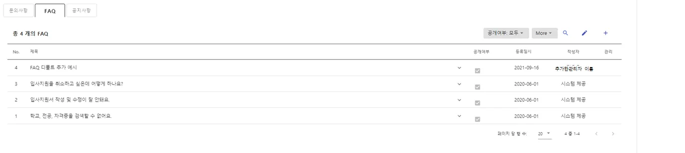 에 체크 해제 > 해당 항목은 FAQ 리스트에서 안보임