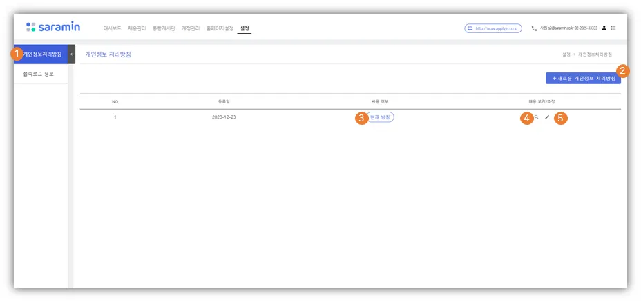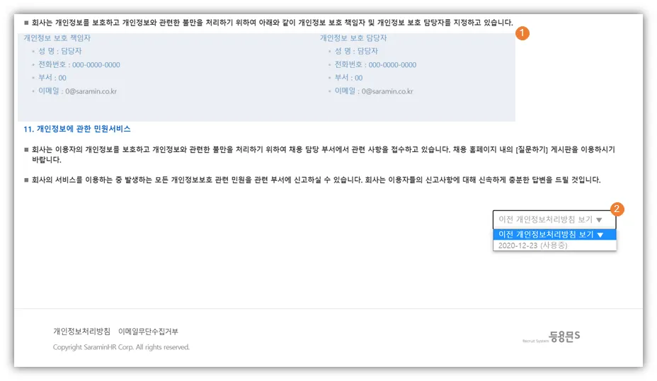 채용홈페이지에서 개인정보 처리방침을 확인할때에 이전에 등록한 처리방침도 확인 가능하답니다!