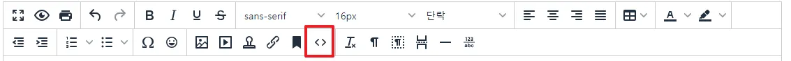 등용문 공고 작성 페이지로 이동하여 <> 버튼을 클릭하세요.