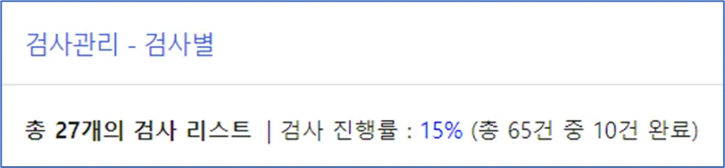페이지 우측 상단에 노출되는 정보를 통해 총 몇 건의 검사가 조회 되었는 지를 알 수 있어요.