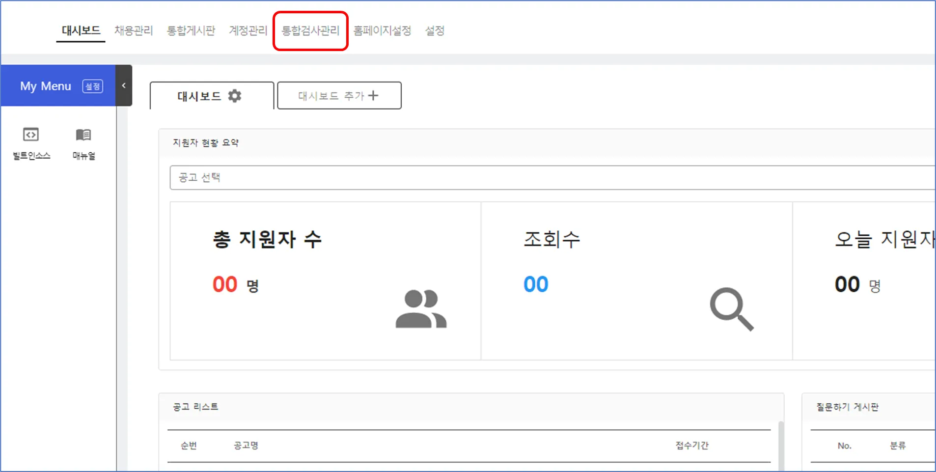 접근경로 : 관리자 로그인 → (상단) 통합검사관리