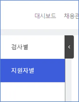 통합검사관리 메뉴를 클릭하면 아래 이미지와 같이 페이지 좌측에 위치한 “검사별”, “지원자별”