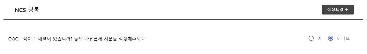 신규항목과 NCS항목이 다른점은 NCS항목에는 [NCS지문] 영역이 있다는 점이다.