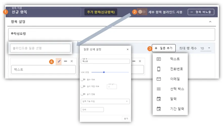 ④ 질문 상세 설정