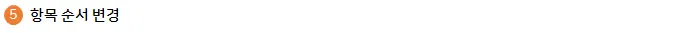⑤ 순서 변경 : 항목의 제목 영역을 잡고 드래그 하여 변경 가능