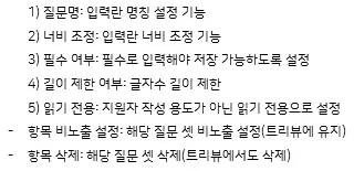 ③ 상세 설정 기능 : 각 항목에 대해서 필수 입력 항목으로 지정, 길이 제한 여부 세팅 등