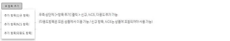 - 상품 있어야 사용 가능 : ncs, 신규항목