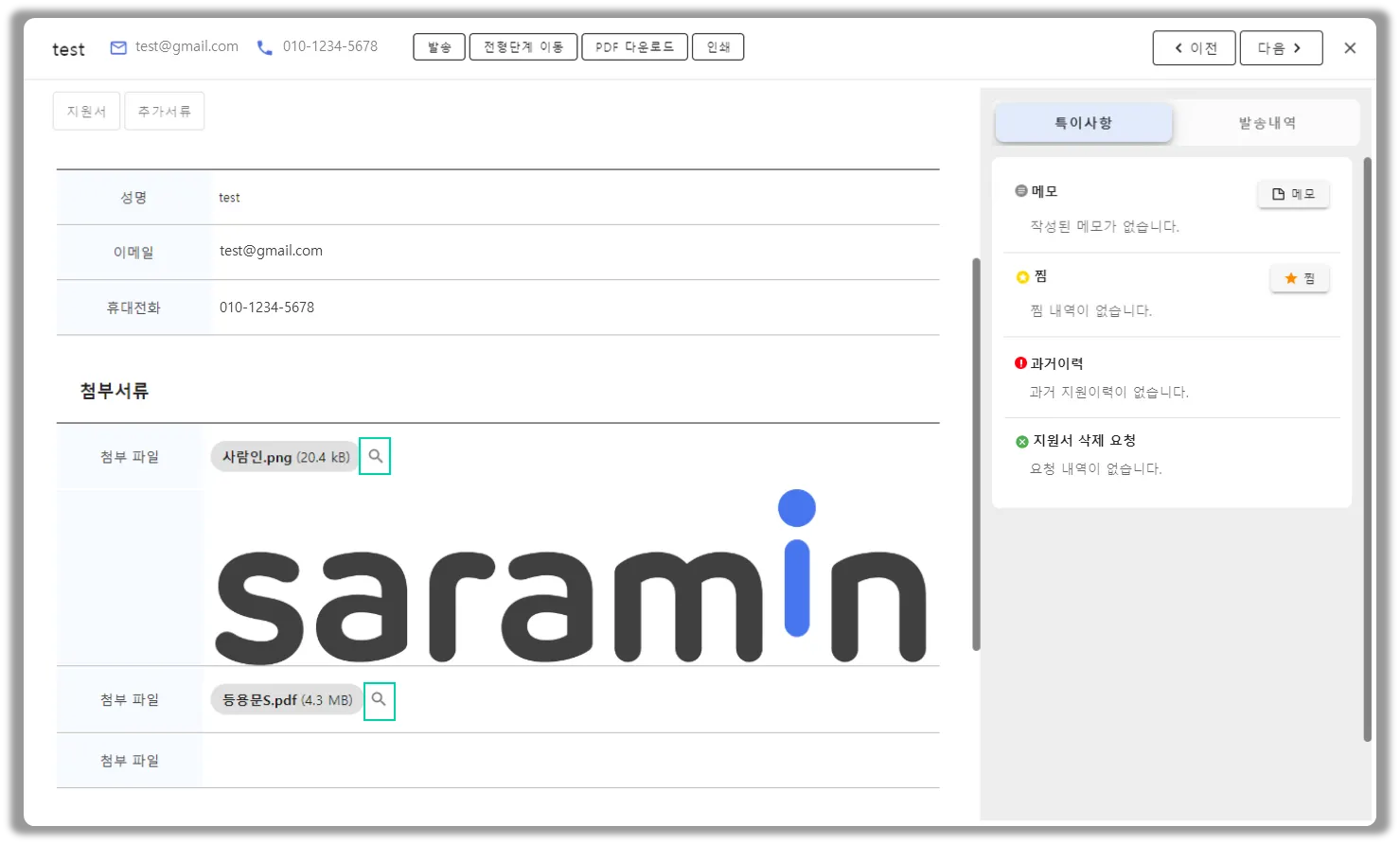 지원자가 제출한 첨부파일을 다운받지 않고 미리보기 할 수 있는 기능이 추가되었습니다!