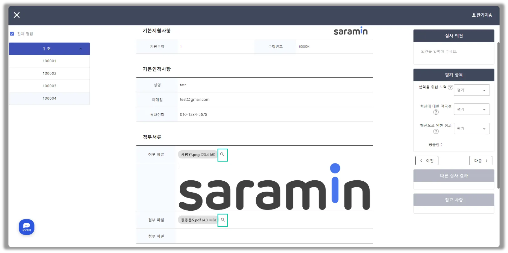 지원자가 이미지(jpg, jpeg, png, gif, bmp) 파일이나 PDF 파일을 첨부했을 경우, 아래 예시 화면처럼 첨부파일명 옆에