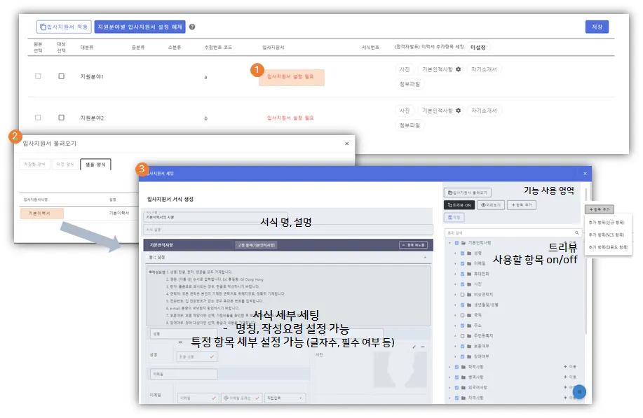 트리뷰 영역 : 입사지원서 항목 on/off 가능