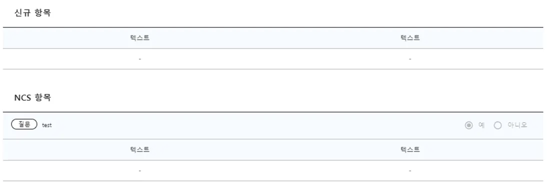 ② 신규항목 / NCS 항목 (스탠다드 상품 이상 제공)