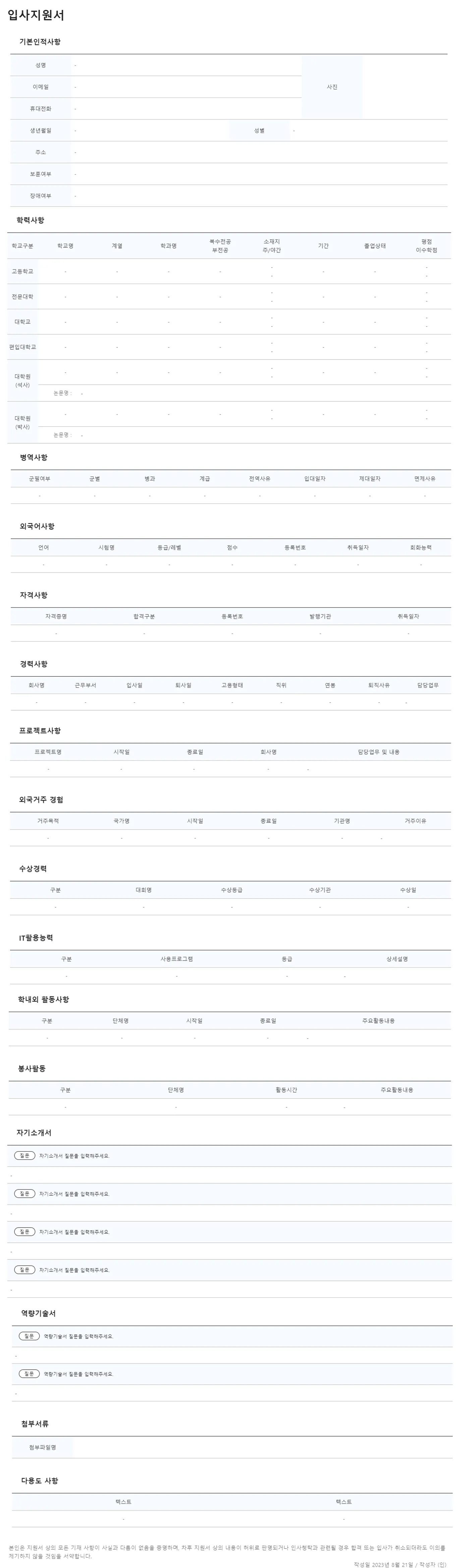 ① 등용문S 기본 제공하는 입사지원서 항목 (베이직 상품~)